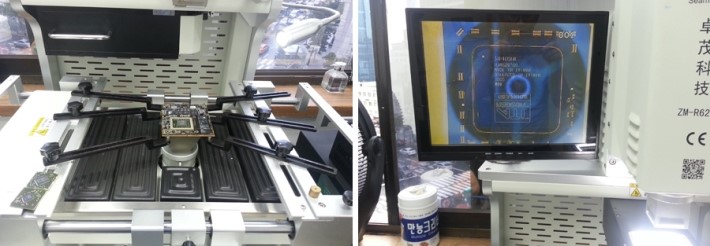 ¸ÞÀκ¸µåÀÇ Ä¨¼ÂÀ» ±³Ã¼ÇÒ ¼ö ÀÖ´Â BGAÀåºñ¿¡ ºÐ¸®ÇÑ ¸ÞÀκ¸µå¸¦ ¿Ã¸° ¸ð½ÀÀÔ´Ï´Ù.
